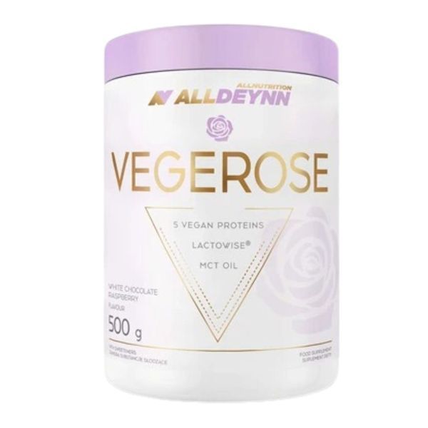 Każda porcja VEGEROSE zawiera 15 g pełnowartościowego białka o bogatym profilu aminokwasowym i ma bardzo niską zawartość cukru (mniej niż 1 g). Należy również zauważyć, że VEGEROSE nie zawiera laktozy, glutenu, soi, mleka krowiego i innych alergenów.